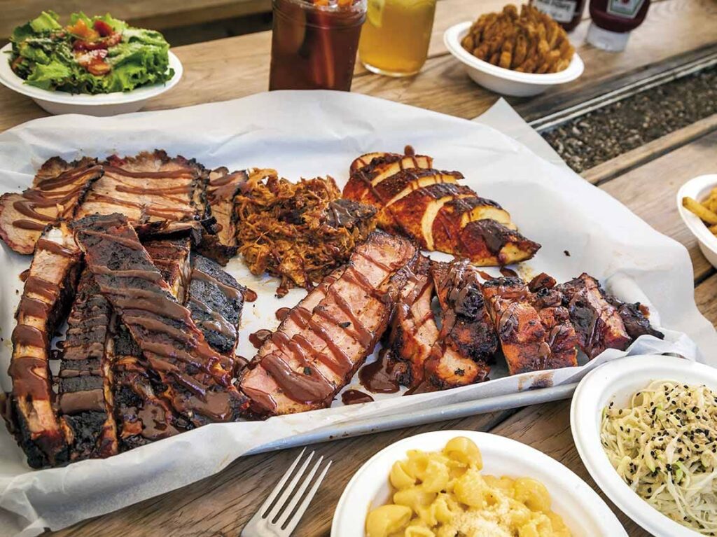 Aquí emplean la técnica BBQ: cocinar lentamente alimentos en parrilla o ahumador, incluyendo tacos, cortes, guarniciones y más.