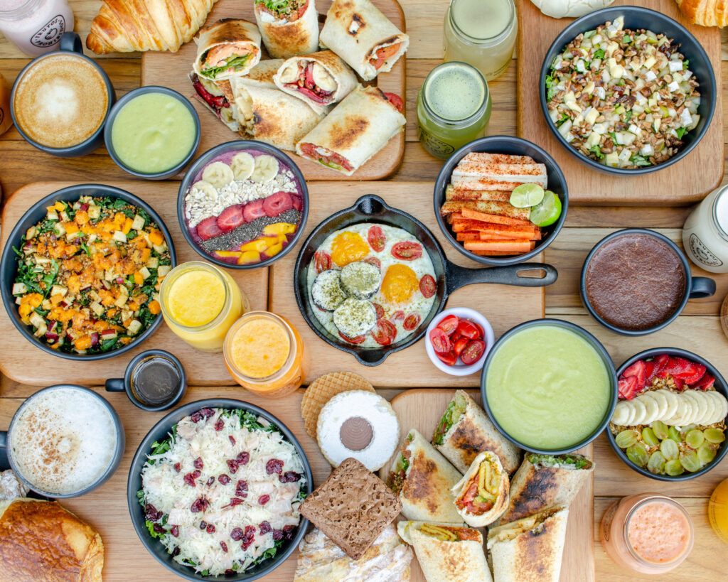 Concepto de “come como en casa” fusionando comida americana y mexicana: hot cakes, waffles, huevos, omelettes, bagels, molletes, sopes, chilaquiles, pozole, ensaladas, tortas, tacos, sándwiches y más. Klein