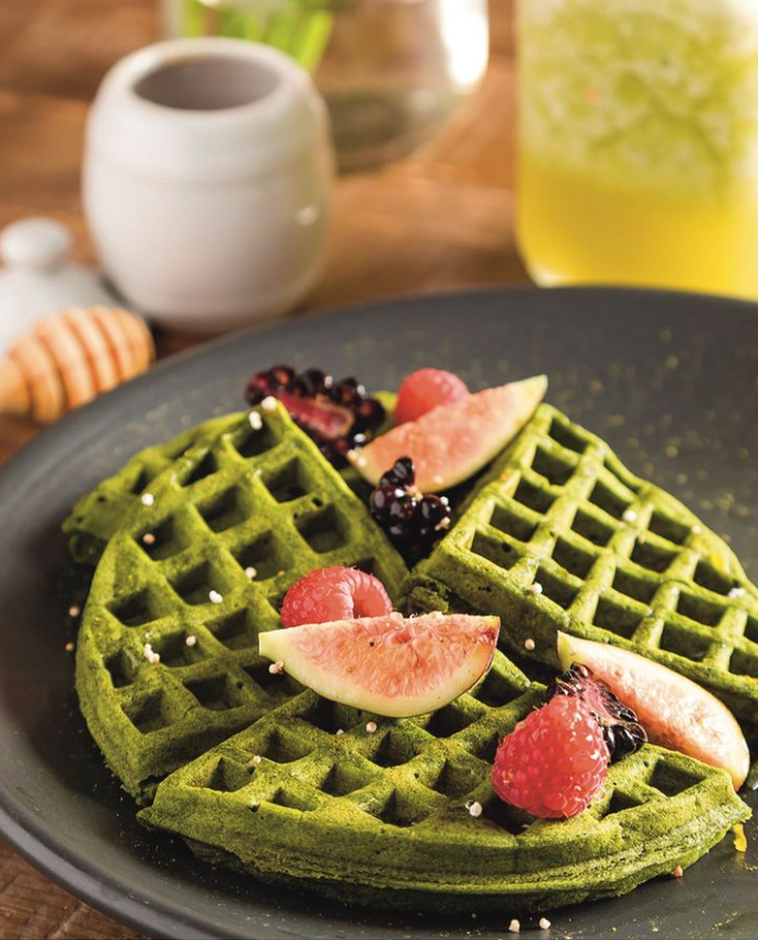 Encontrarás opciones de comida saludable: pan francés, waffles, fruta con tapioca, huevos o enchiladas suizas.